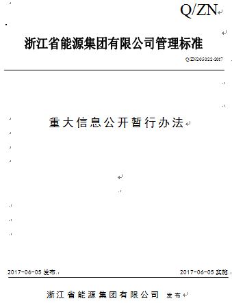 《浙江省省属企业重大信息公开暂行办法》(浙国资发[2015]4号)