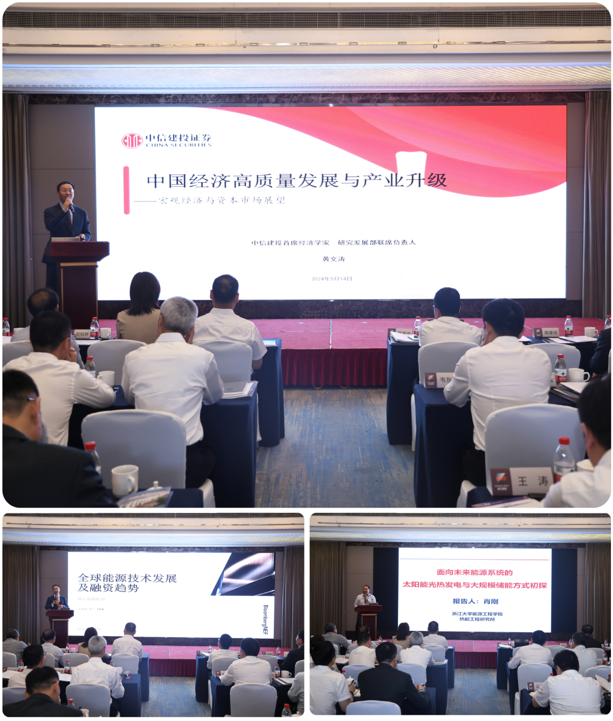 本次活动邀请了中信建投首席经济学家黄文涛、国家杰出青年基金获得者肖刚、彭博新能源财经中国首席战略与研究主管寇楠楠,分别围绕中国经济高质量发展与产业升级、未来能源系统光热发电与储能方式、全球能源技术发展及融资趋势等方面作分享交流。