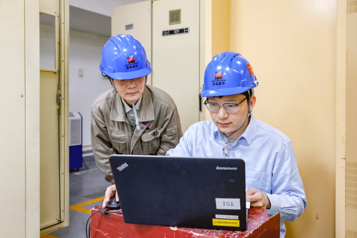 在3号机组主机TSI系统框架升级改造现场,嘉电维护部仪控二班周海锋和杨黎目不转睛地盯着信号曲线,从中解读出机组的“健康状况”。他们深知每一处逻辑修改都至关重要,稍有不慎误操作都可能导致大问题,影响机组正常运转。
