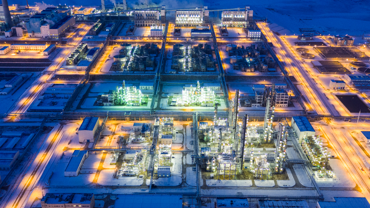 在伊犁河畔,新天煤化工灯火通明,煤制天然气通过绵延万里的“西气东输”管线送往浙江。 王麟 摄
