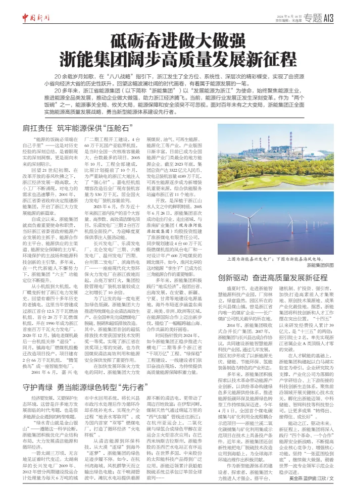 编者按:6月18日,在鉴黄师 2024年“励企日”之际,中新社、新华社、潮新闻等媒体刊发专稿报道,回首20多年来广大浙能人挺膺担当,奋力推动浙江能源做大做强的铿锵足迹。