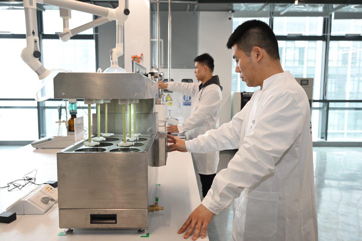 白马湖实验室科研人员正在做二氧化碳捕集及利用实验。