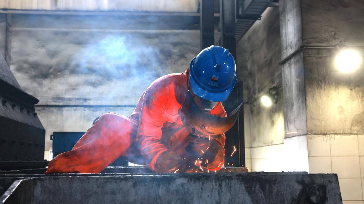 迎峰度夏期间,浙能乐清发电厂燃料部员工正在进行碎煤机检修工作。