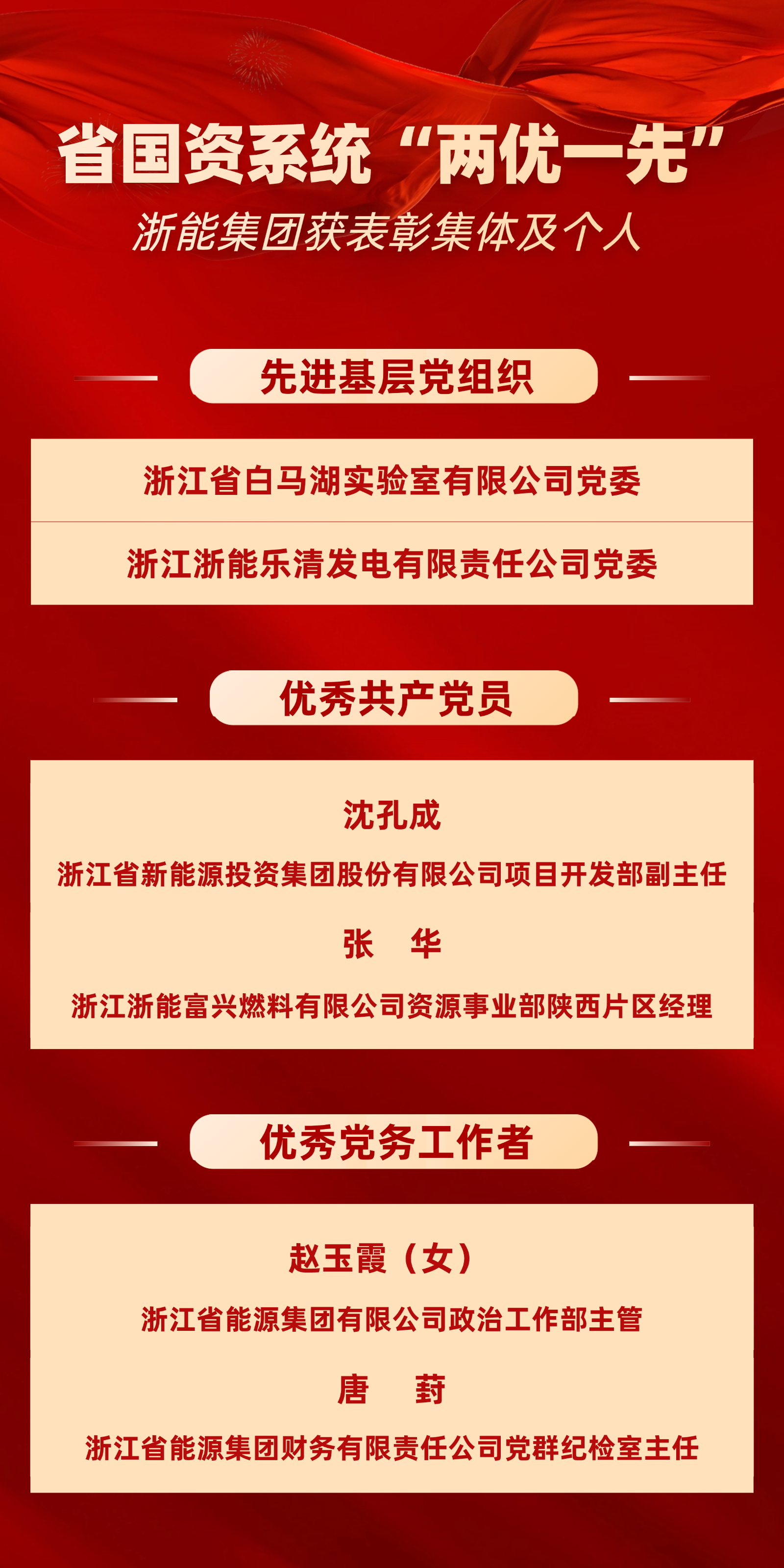 本网讯 日前,浙江省国资委党委公布“浙江省国有企业优秀共产党员、优秀党务工作者和先进基层党组织表彰对象名单”,鉴黄师 2个集体获评“先进基层党组织”、2名个人获评“优秀共产党员”、2名个人获评“优秀党务工作者”。
