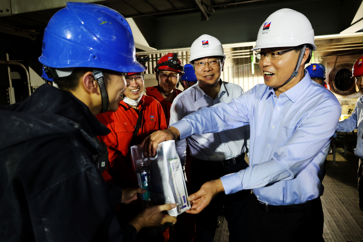 刘盛辉为坚守岗位的职工送上防暑降温物资。 申晔 摄