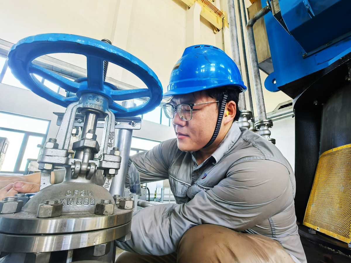 乐电汽机班张皓杰在循泵房开展阀门检修作业。 陈清瑜 摄