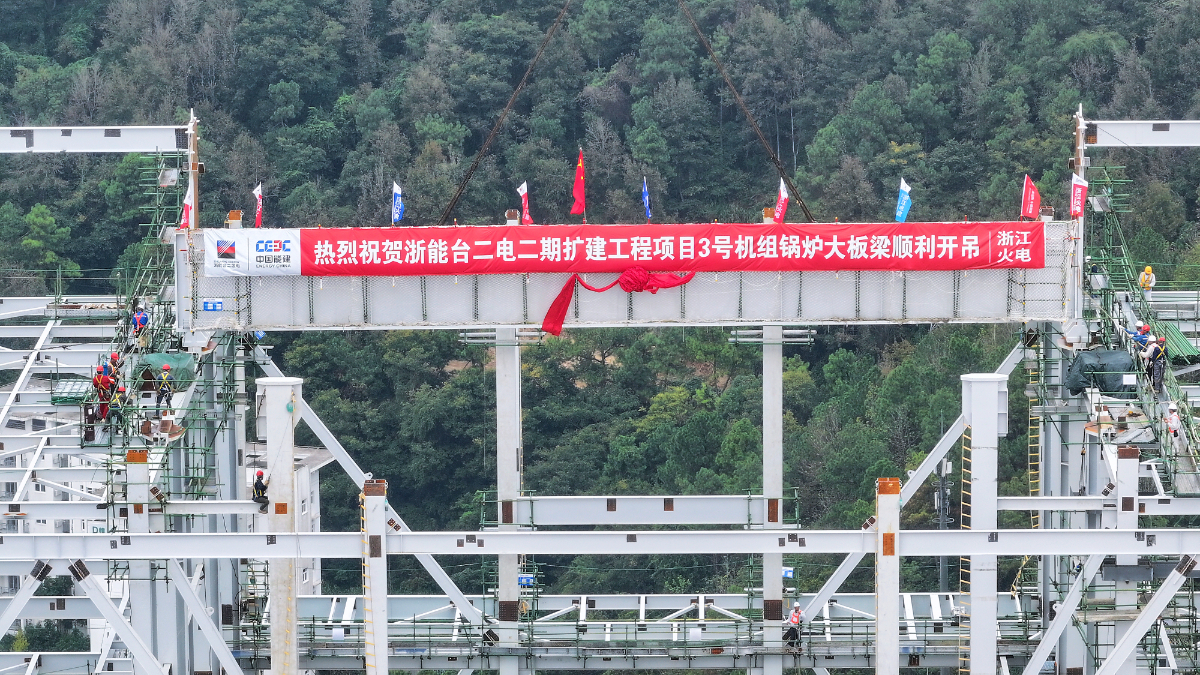 奋战金秋,重大能源项目建设迎来新“丰收”。10月25日,浙能台二电二期扩建工程3号机组锅炉首根大板梁顺利吊装就位,标志着该机组锅炉钢结构主体框架趋于完工,将进入锅炉受热面设备安装施工阶段。