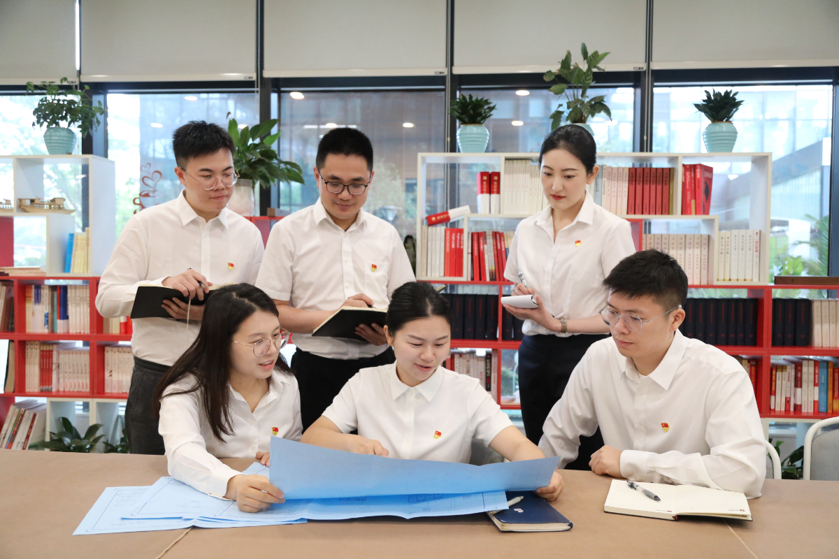 03-铜奖项目-浙江浙能科技环保集团股份有限公司的《“蓄式”而发,点“燃”高质量发展新引攀——高效RTO技术在能源化工工程的应用与示范》青创团队成员们正在进行项目研讨。 张琪 提供