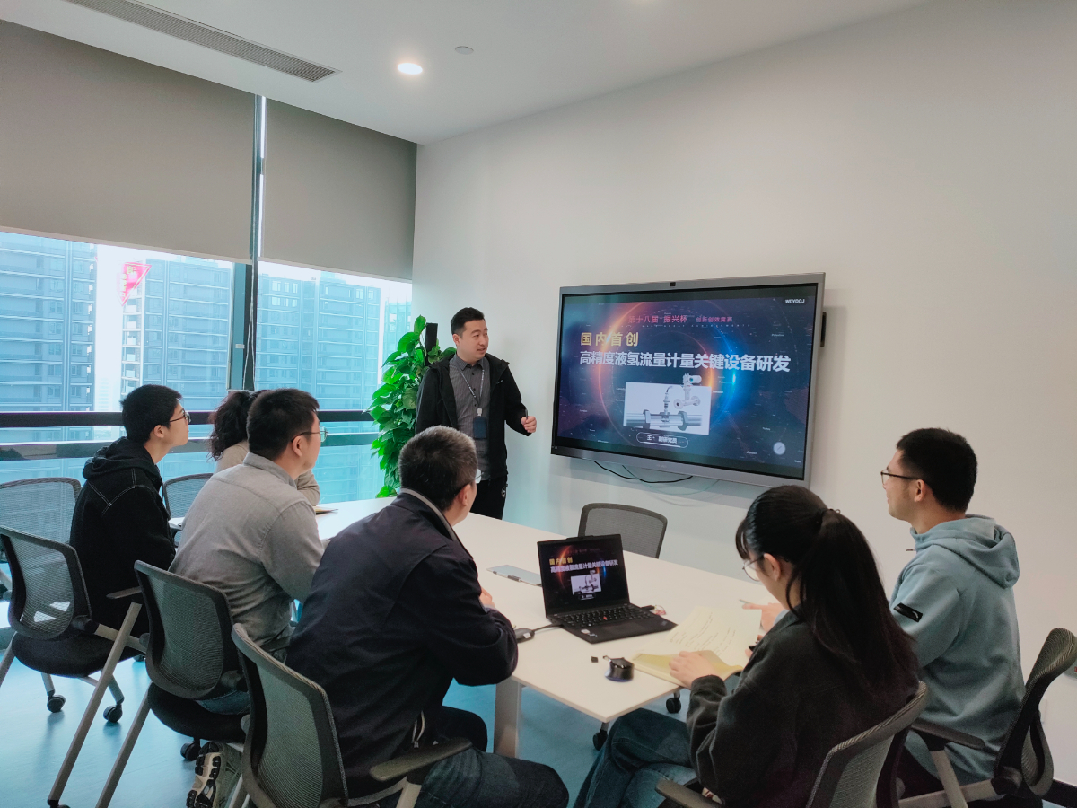 03-铜奖项目-白马湖实验室氢能(长兴)有限公司的《高精度液氢流量计量关键设备研发》青创团队成员们正在进行项目研讨。 王军 提供
