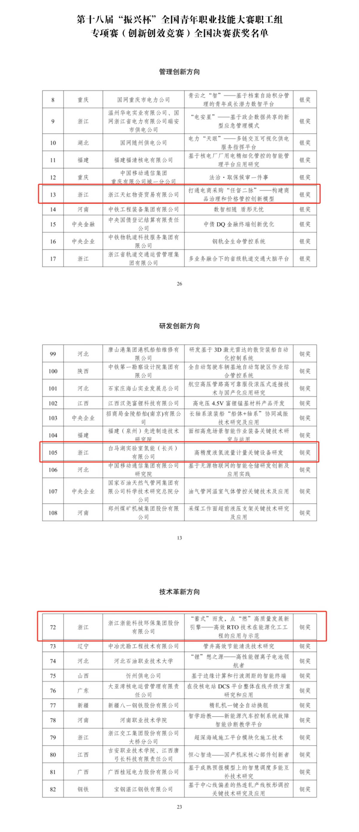 第十八届“振兴杯”全国青年职业技能大赛职工组专项赛(创新创效竞赛)全国决赛获奖名单。 “振兴杯”赛事组委会 提供