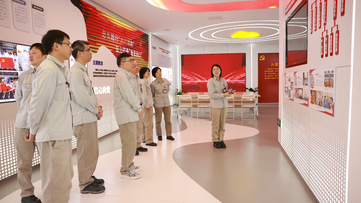 乐电公司党员在企业展厅聆听发展故事,感受澎湃动能。 陈清瑜 摄