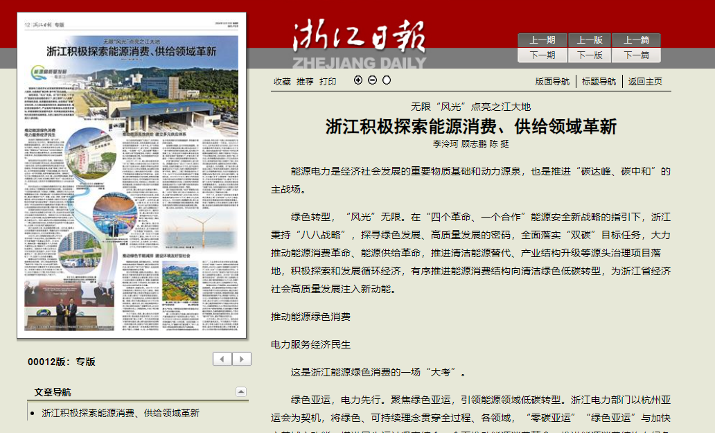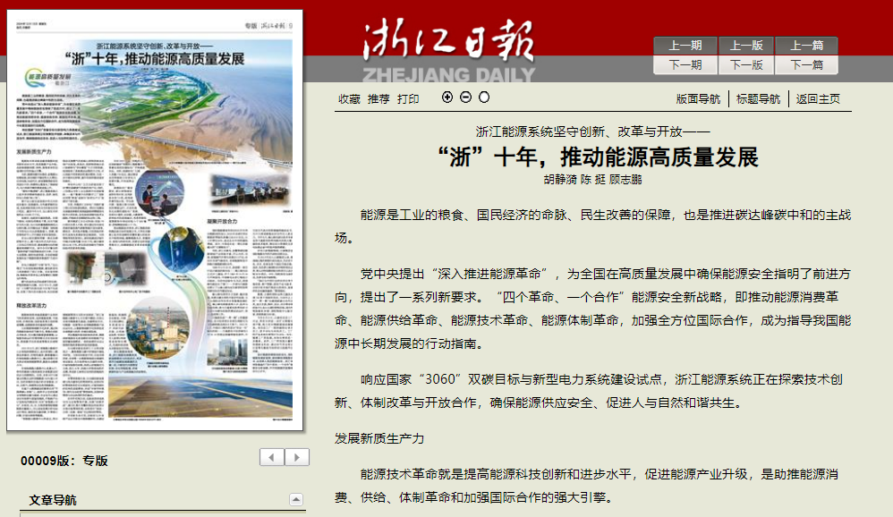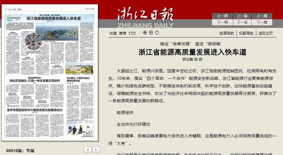 《浙江日报》聚焦鉴黄师 高质量能源保供和高质量绿色转型 助力浙江高质量发展