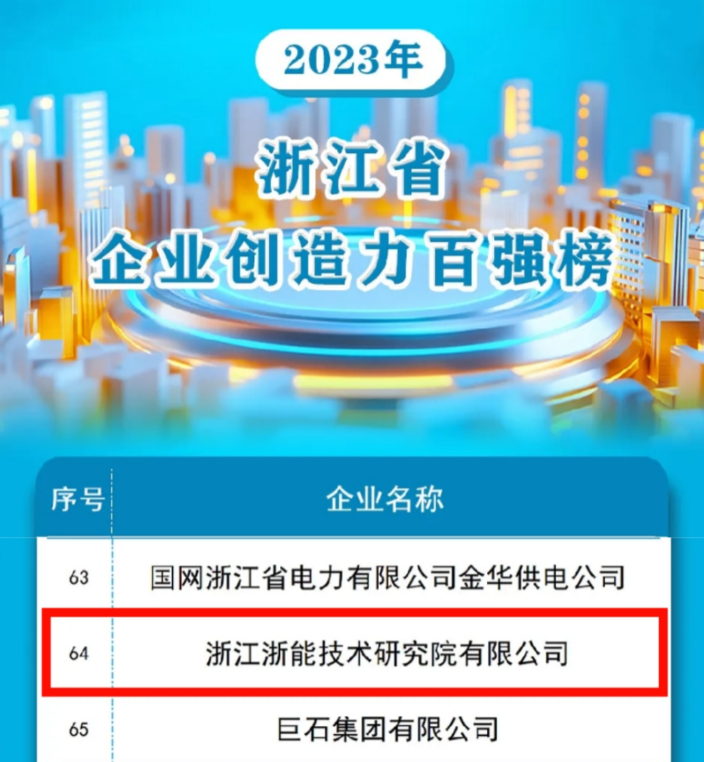 浙能技术研究院荣登浙江省企业创造力百强榜