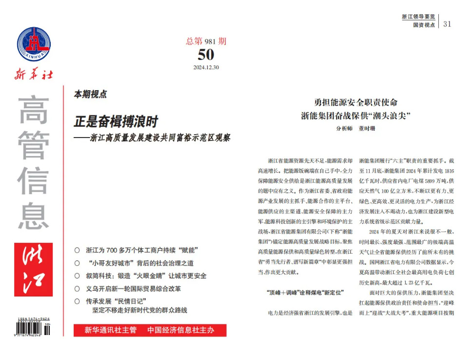 新华社《社高管信息》报道《勇担能源安全职责使命 鉴黄师 奋战保供“潮头浪尖”》 新华社《社高管信息》 图