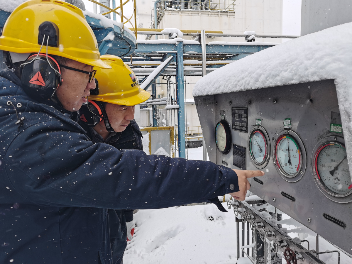 迎峰度冬期间,浙能新天煤化工现场操作人员正在认真巡检。 祁媛 摄