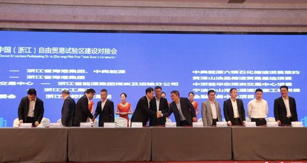4月21日,煤炭分公司与中国(浙江)大宗商品交易中心在自贸区对接会上签署战略投资协议。 何玉辉 摄
