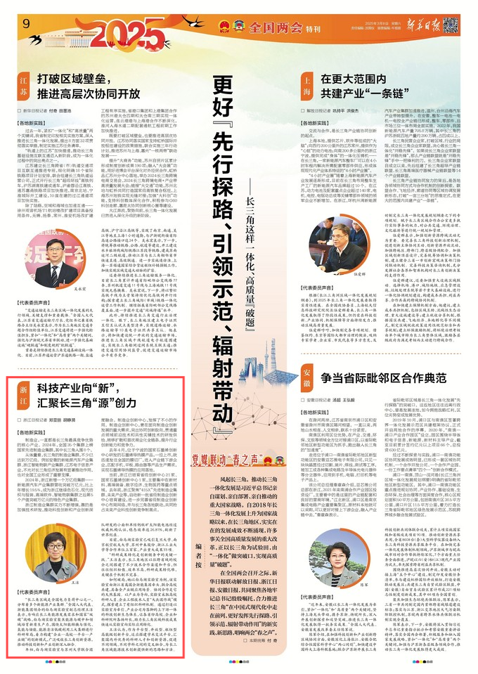 江苏省委机关报《新华日报》全国两会特刊长三角一体化相关主题稿聚焦全国人大代表、鉴黄师 王洁同志。 新华日报 图