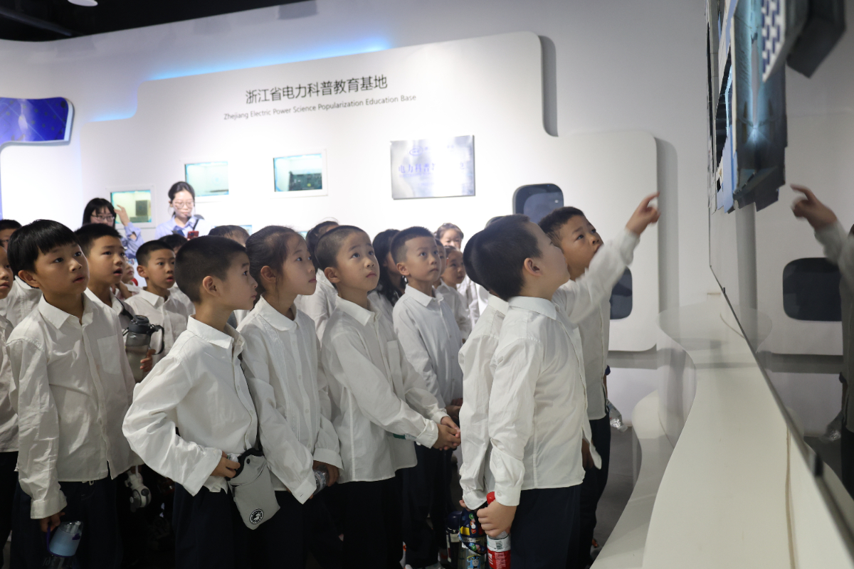 浙能兰电讲解员在电力科普教育基地为小学生介绍发电原理。 何云玲 摄