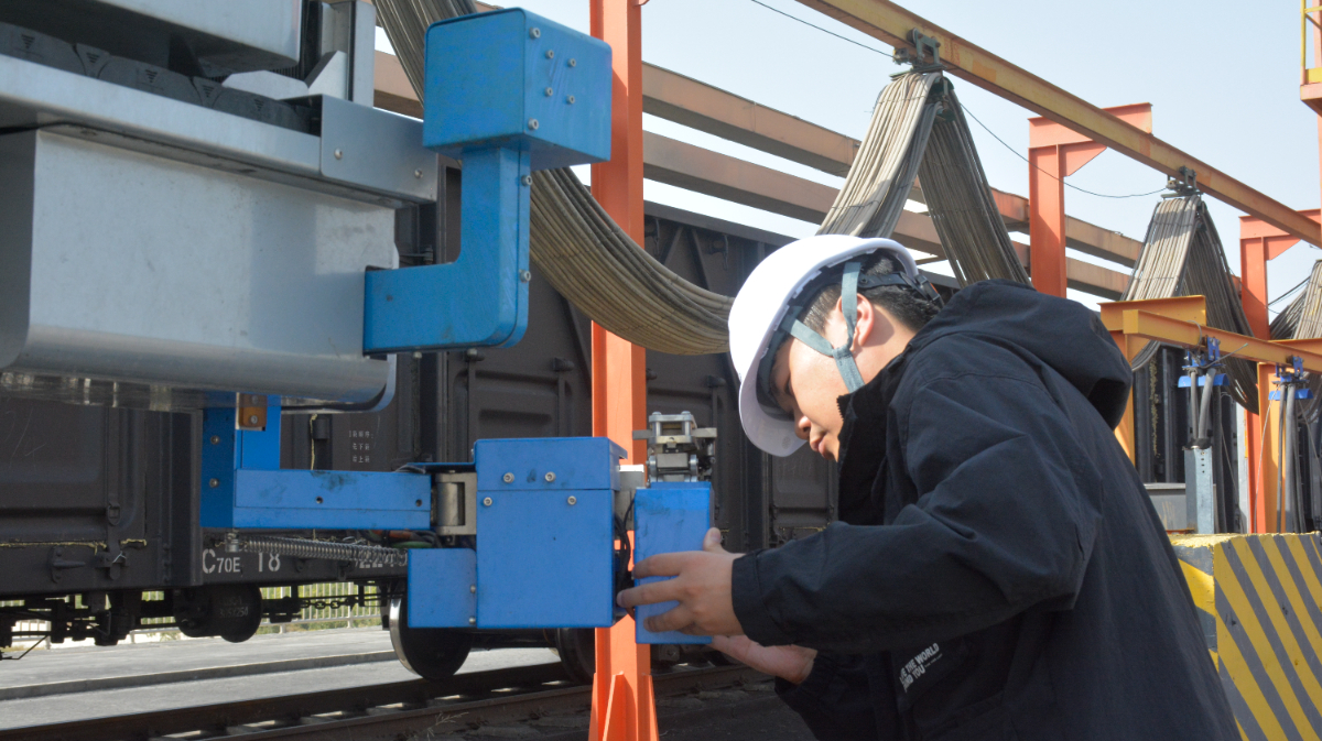 “翻车机全自动智能摘复钩机器人”研发项目团队成员现场调试摘复钩机器人。 骆洲 提供