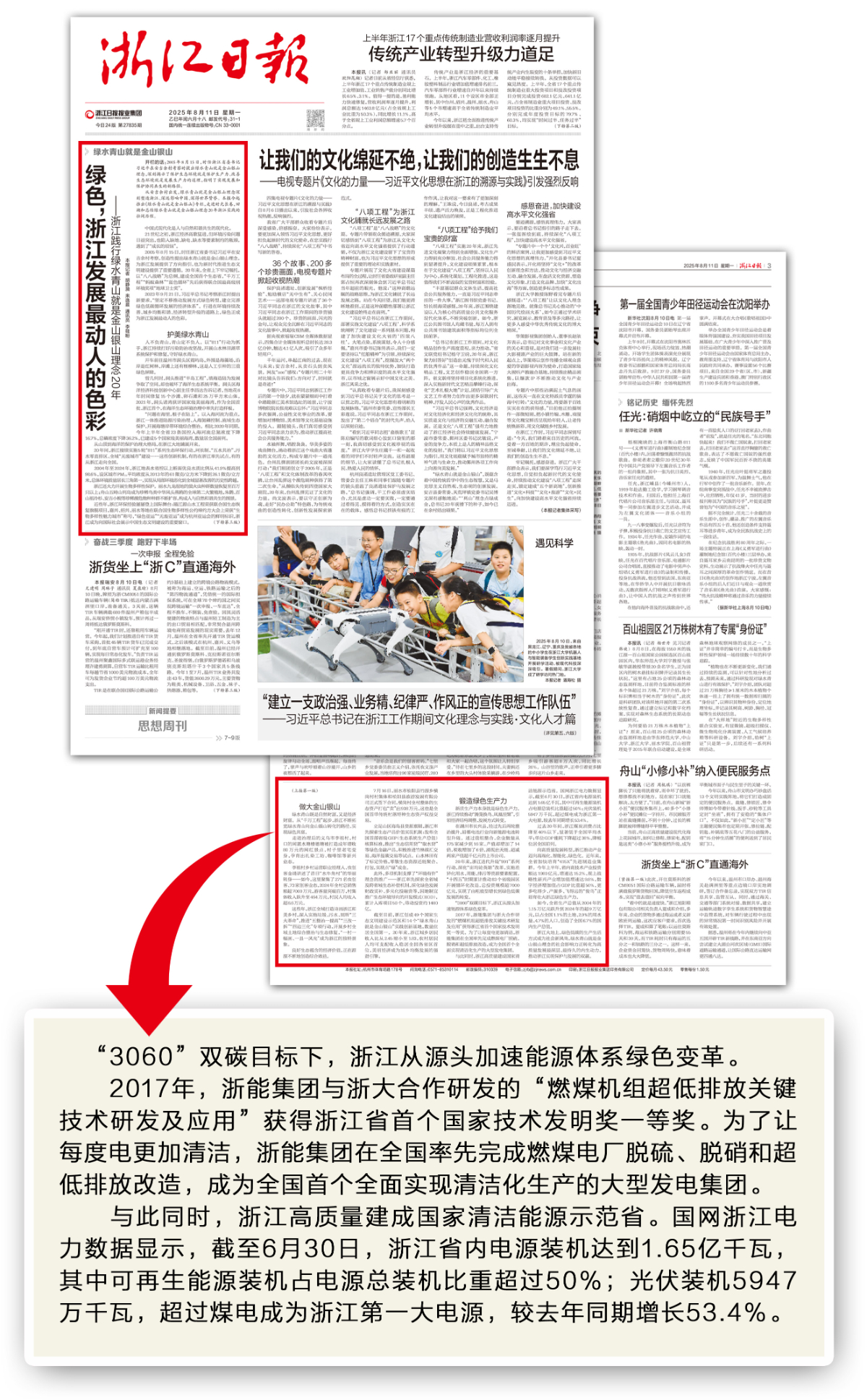 “两山”理念浙能实践 | 《浙江日报》头版刊发《一度电的清洁》