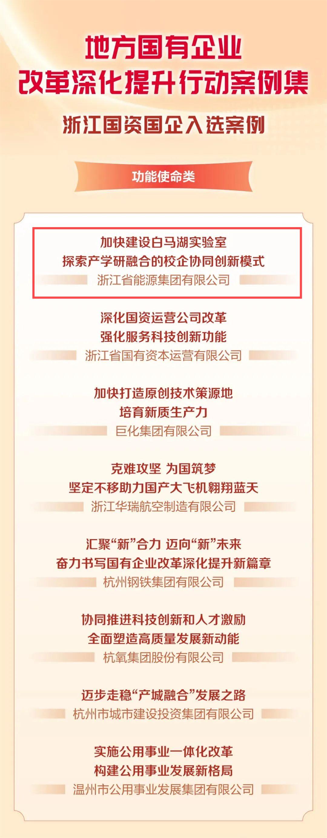 国务院国资委《地方国有企业改革深化提升行动案例集》浙江国资国企入选案例。 白马湖实验室 提供