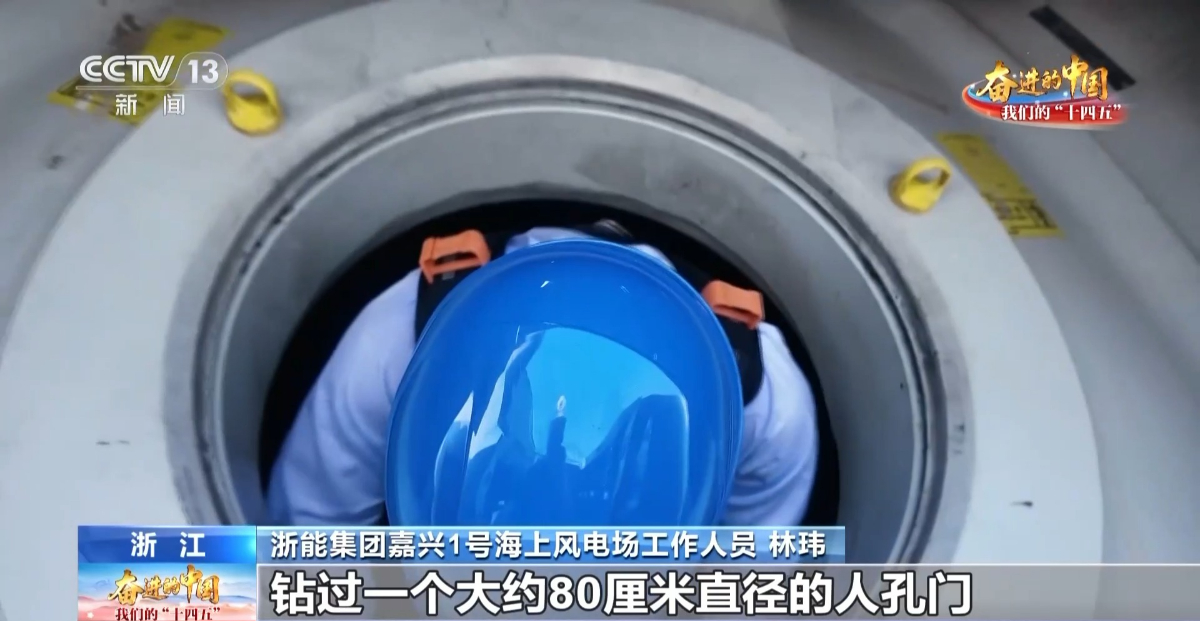 中央电视台新闻频道《奋进的中国 我们的“十四五”》报道嘉兴1号海上风电场风机维护人员的一天。 周晨 提供