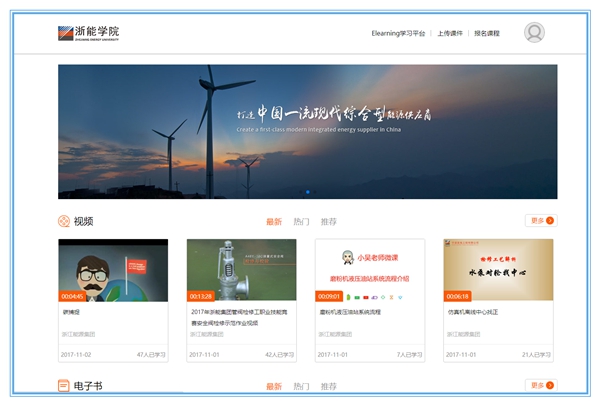 11月15日,浙能培训部推出E-learning升级版网络学习平台——浙能学院。新平台加推多种新功能:视频教学,让学习更加直观可感;个性定制,一个属于自己的学习成长空间;自拍上传,分分钟让你成为技术导师;交流互动,随时随地碰撞思想的火花;手机客户端,让学习成为无处不在的习惯……