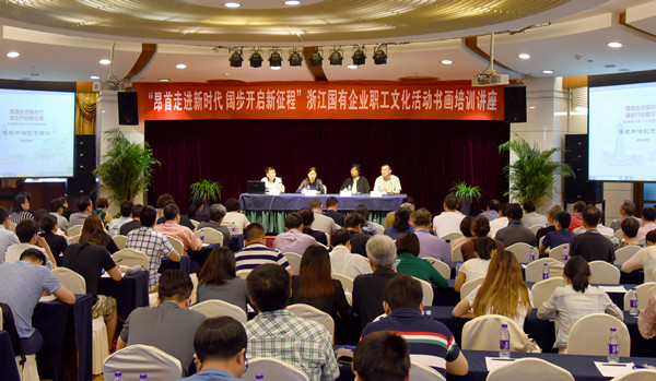 为学习贯彻落实党的十九大精神,纪念改革开放40周年,5月26日,由鉴黄师 、西泠印社文化艺术发展有限公司承办的“昂首走进新时代 阔步开启新征程”浙江省国有企业职工书法培训班在杭州正式开班,为繁荣国资国企文化,丰富企业职工文化生活产生积极的推动作用。浙江省国资委宣传处处长范红出席开班仪式并讲话。来自浙江省国有企业的200名职工书法爱好者参加开班仪式。集团政治工作部主任夏守慧主持开班仪式。