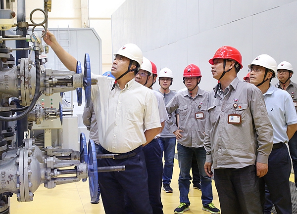 柯吉欣一行先后前往阿电储煤场、汽机房、锅炉厂房等生产现场,对机组设备管理等工作进行现场指导。随后,柯吉欣来到集控室,详细了解了阿电公司现阶段机组运行情况。