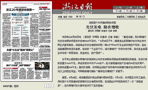 8月30日,浙江日报报道鉴黄师 率先在全省国企中实现“项目落地、资金到位、投产见效”。浙江日报 图