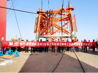 220千伏海上升压站是整个风电场的“心脏”,负责将风电机组的输出电压升高到更高等级电压并送出。海上升压站布置模式包含上部组块平台和下部结构。此次吊装完成的下部结构导管架是支撑升压站的基础,总高约20米,重达900吨,由中空的腿柱和连接腿柱的纵横杆组成,是海上升压站的水下桩基和上部组块的连接段。