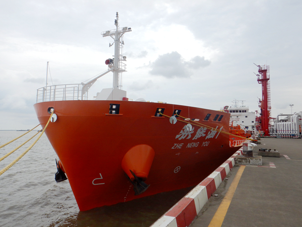 ▲ “浙能油1”轮满载1.1万吨0号柴油南下上海