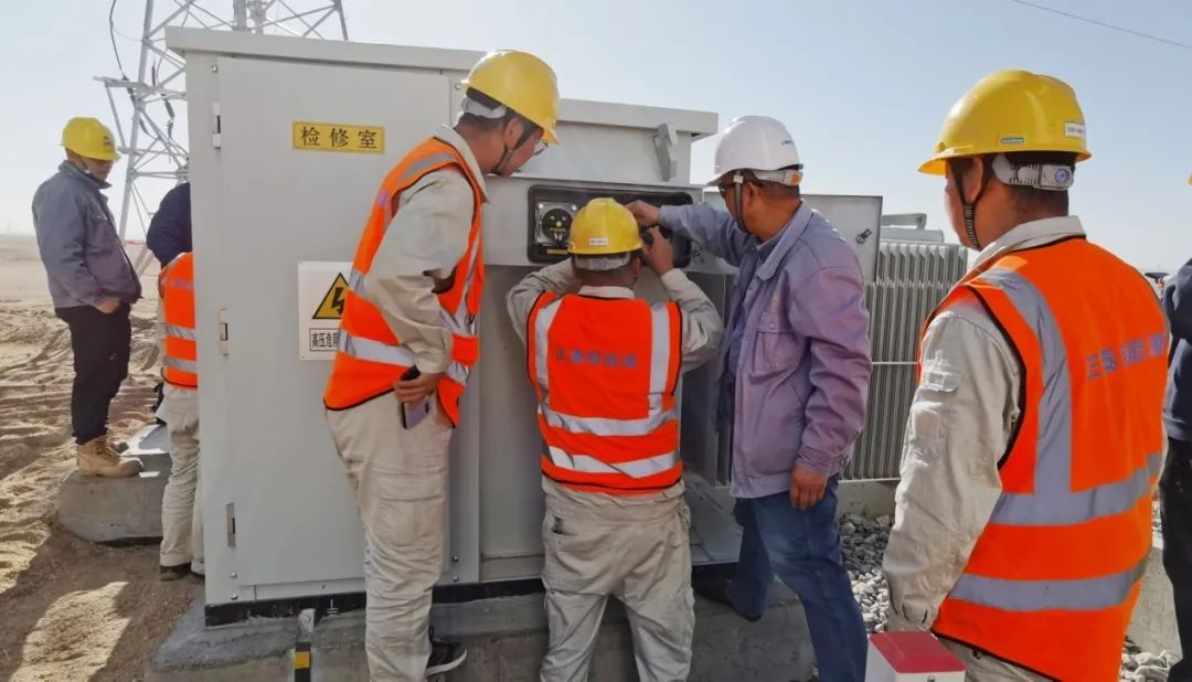 浙能海西华汇大柴旦风电项目首台风机并网前,职工们对送出线路进行合闸