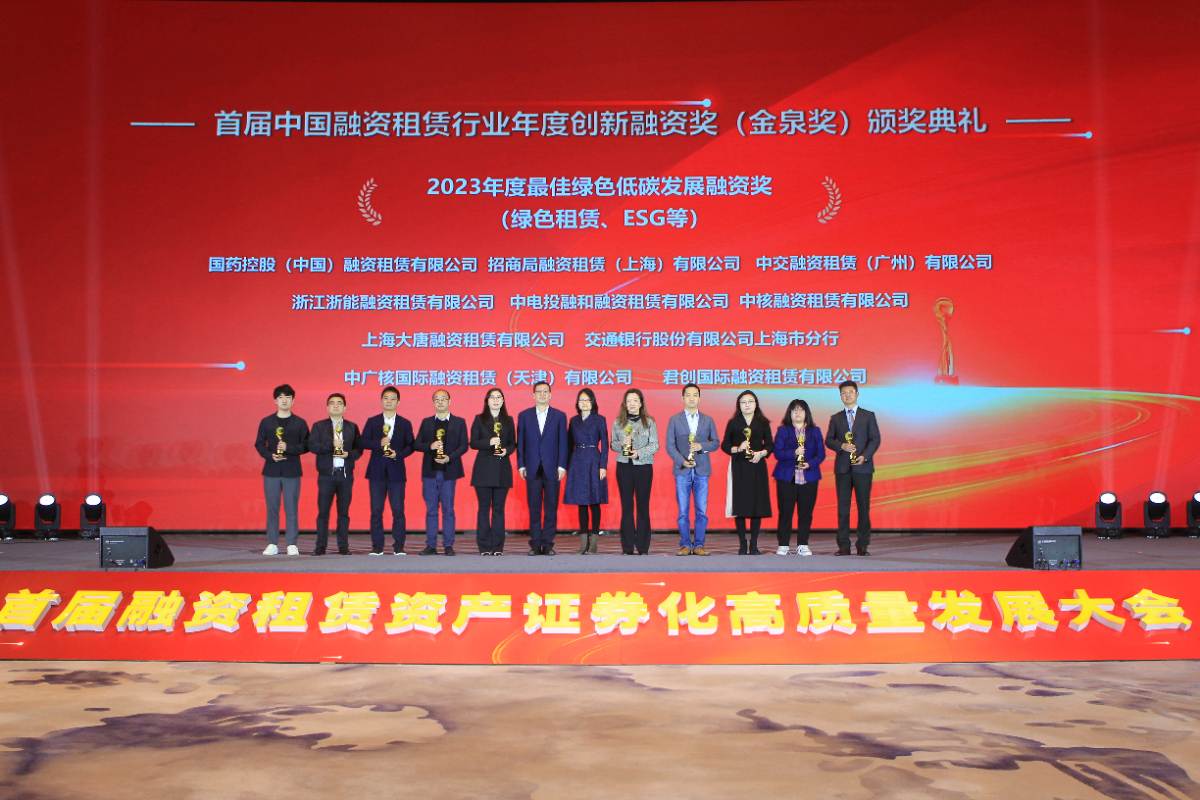 本网讯 3月29日,“金融赋能助发展、泉涌浦江润万企”——首届融资租赁资产证券化高质量发展大会暨首届中国融资租赁行业年度创新融资奖(金泉奖)颁奖典礼在上海临港举行,浙江浙能融资租赁有限公司受邀出席本次活动并荣获“2023年度最佳绿色低碳发展融资奖”。