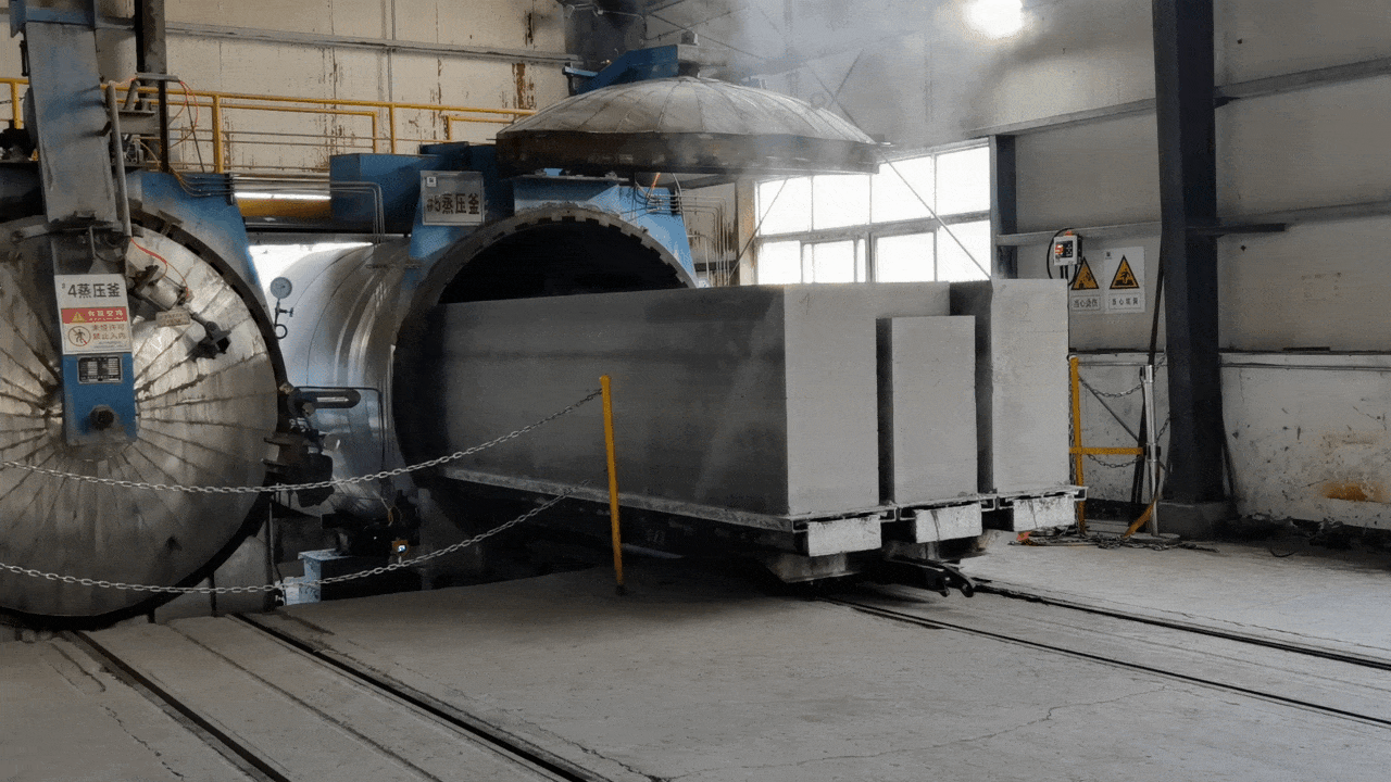 加入项目捕集的二氧化碳烧制的加气砌块砖正在出釜。 张威 摄