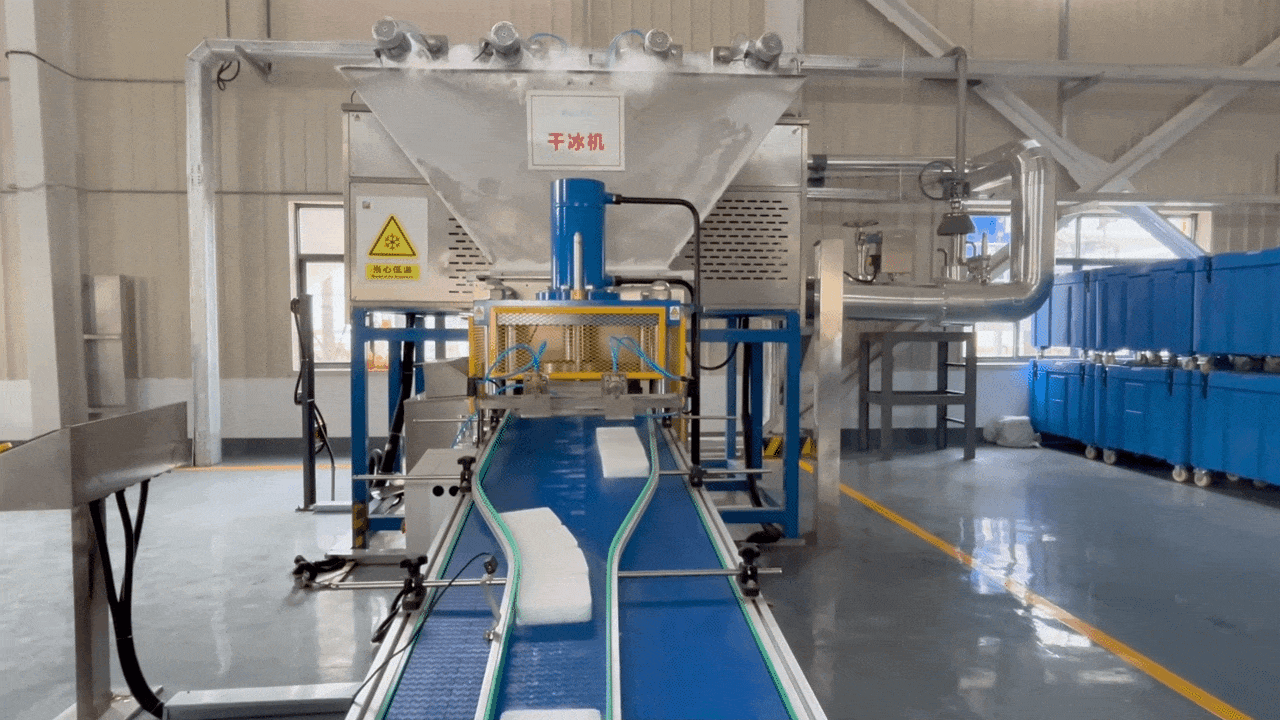 浙能“捕碳”高手能“捕”也善“用”。在该项目干冰生产线上,一块块方形干冰整齐排列,从传送带上被运向储藏区。这些由“被捕”的二氧化碳所制成的干冰为食品级干冰,可服务于食品药品冷链运输。与此同时,更多的二氧化碳将被“捕捉”到矿化养护加气砌块里,用于建筑等领域,实现环境效益和经济效益双丰收。
