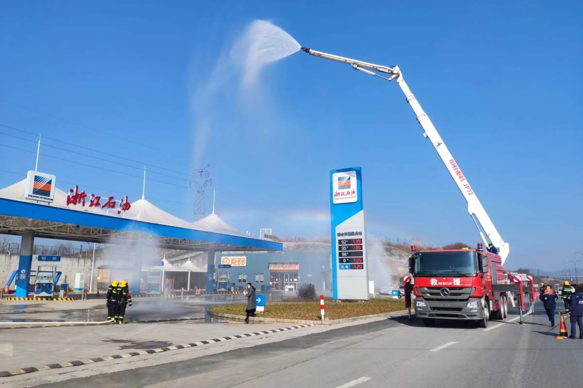 浙石油金华阳光大道综合供能站与义乌苏溪消防大队联合开展消防演练。 林初然 提供