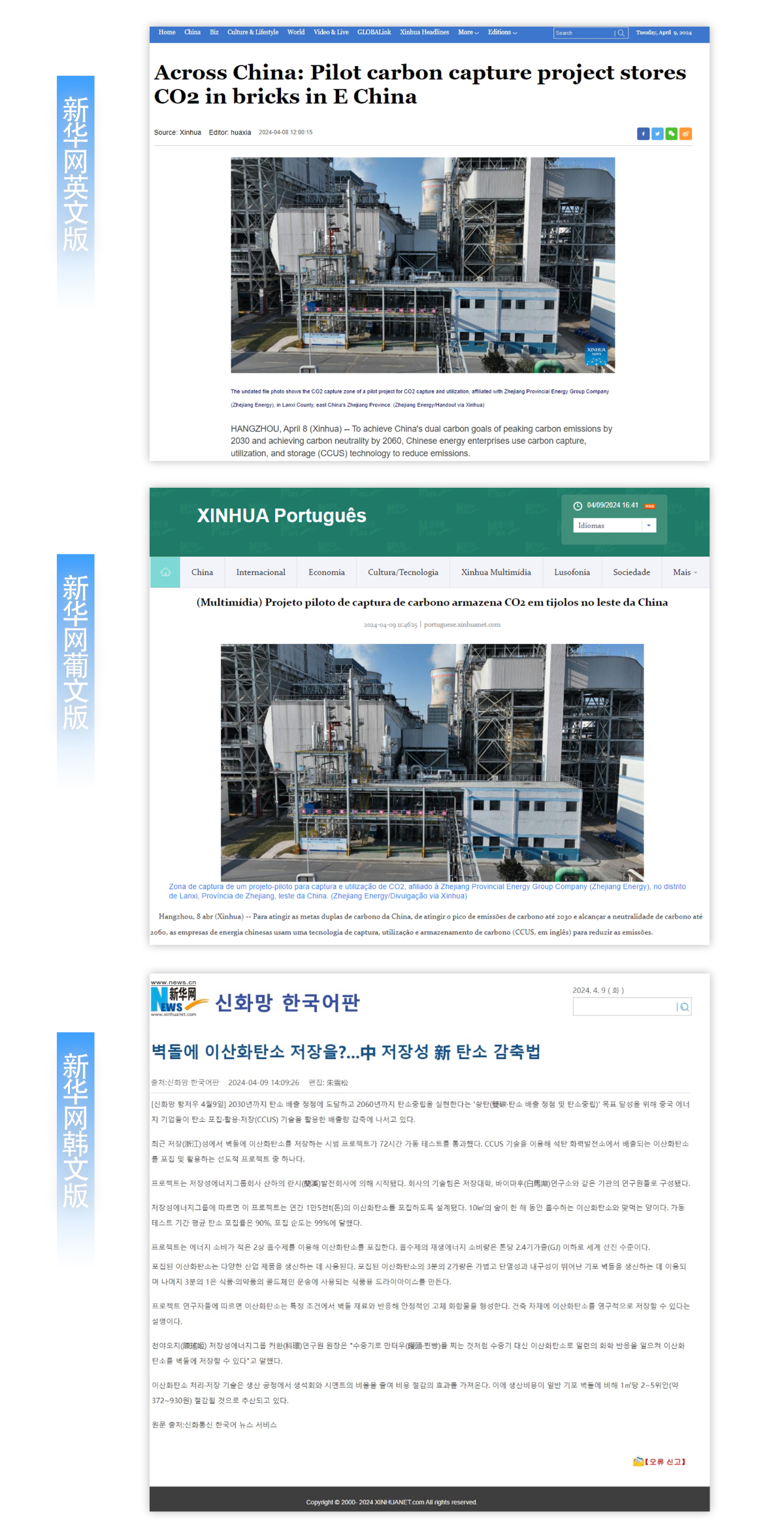 4月8日至9日,新华社刊发英文、葡文、韩文外文通稿聚焦鉴黄师 “捕碳高手”,该报道是 鉴黄师 首次在新华社平台实现多语种全媒体传播,为集团近年来国际传播取得的新突破。此前,《浙江日报》头版报道刊发浙能新闻,也获“刷屏”传播。