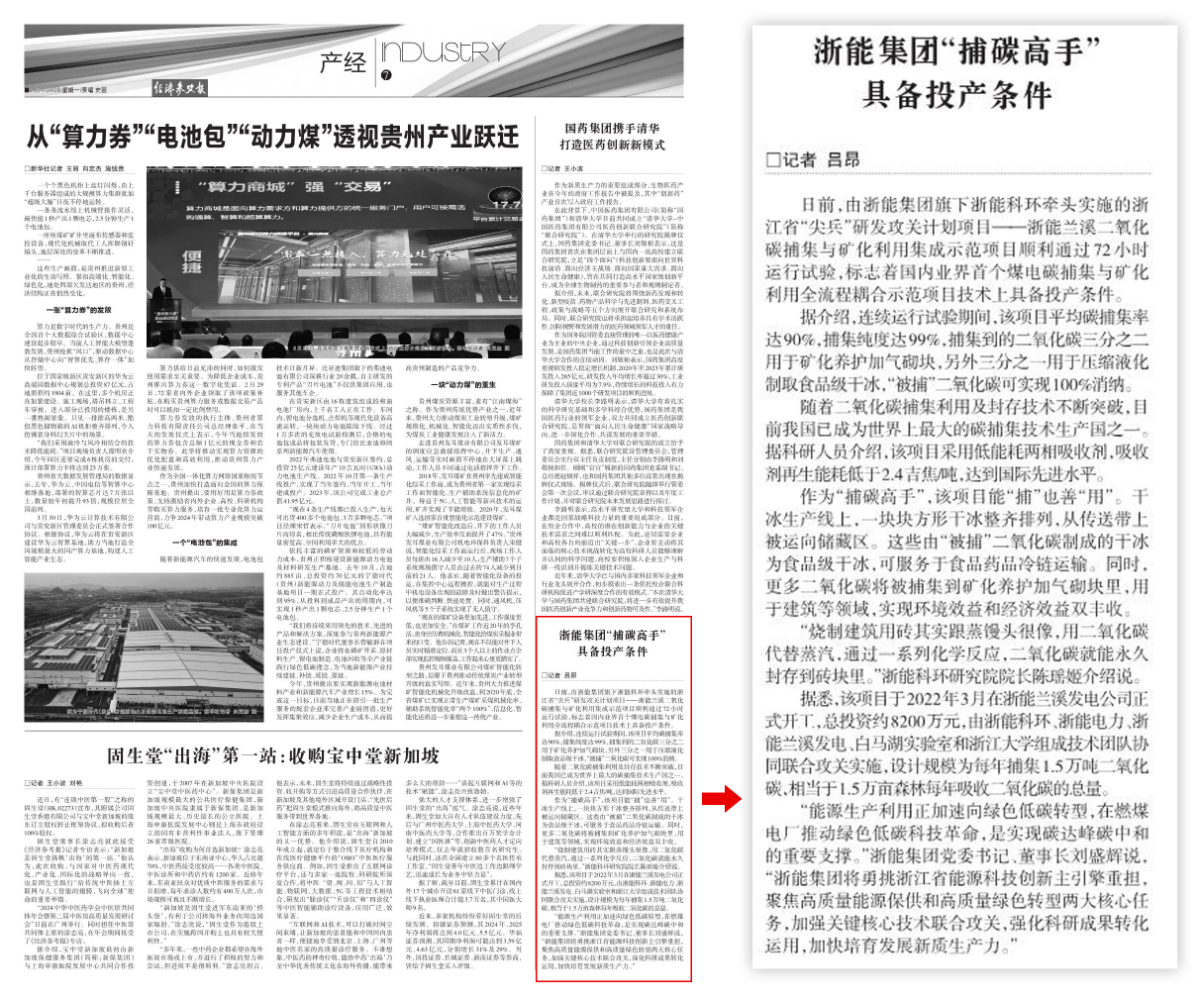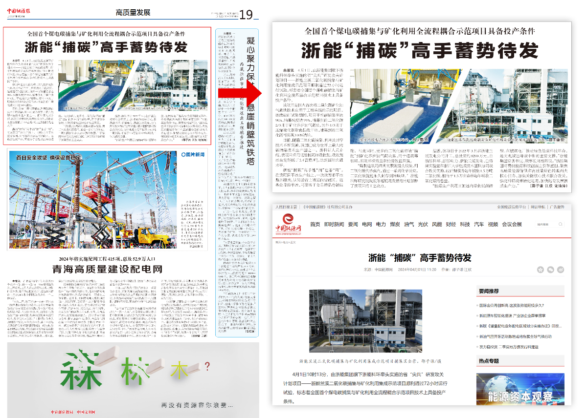 4月8日,人民日报旗下《中国能源报》版面头条《浙能“捕碳”高手蓄势待发》。 中国能源报 图
